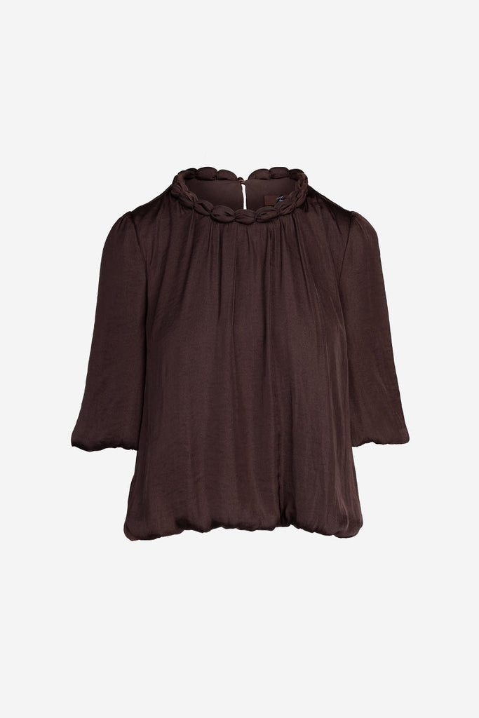 ╴Women's Round Neckline Accent Billowy Blouse