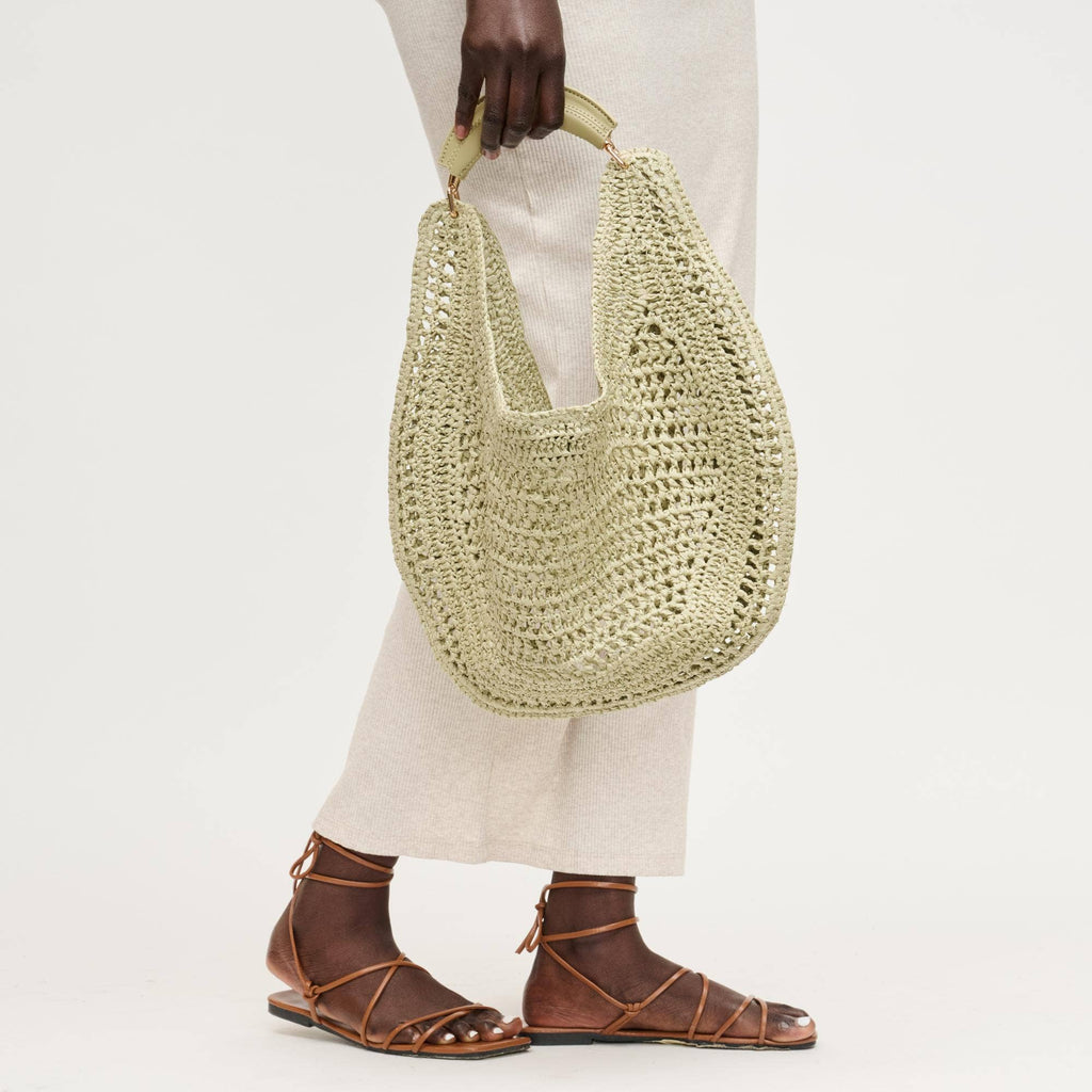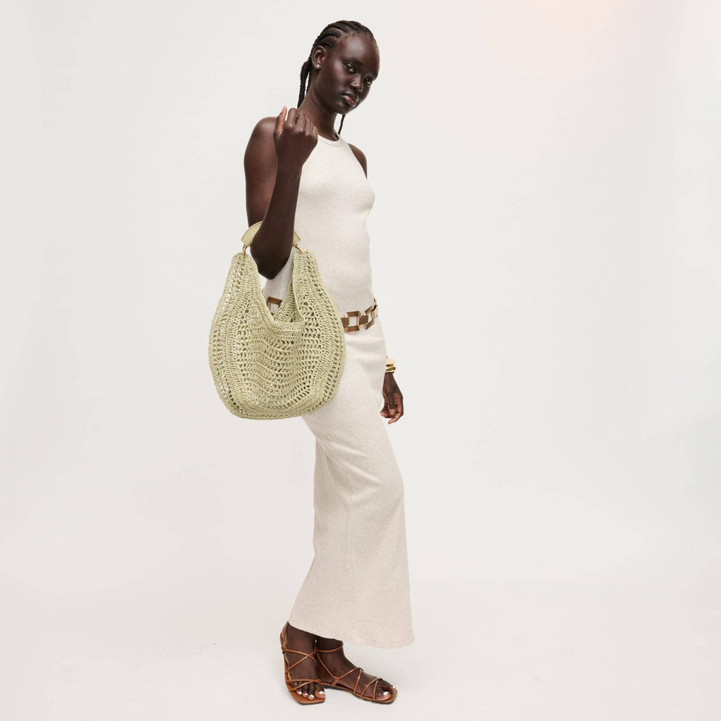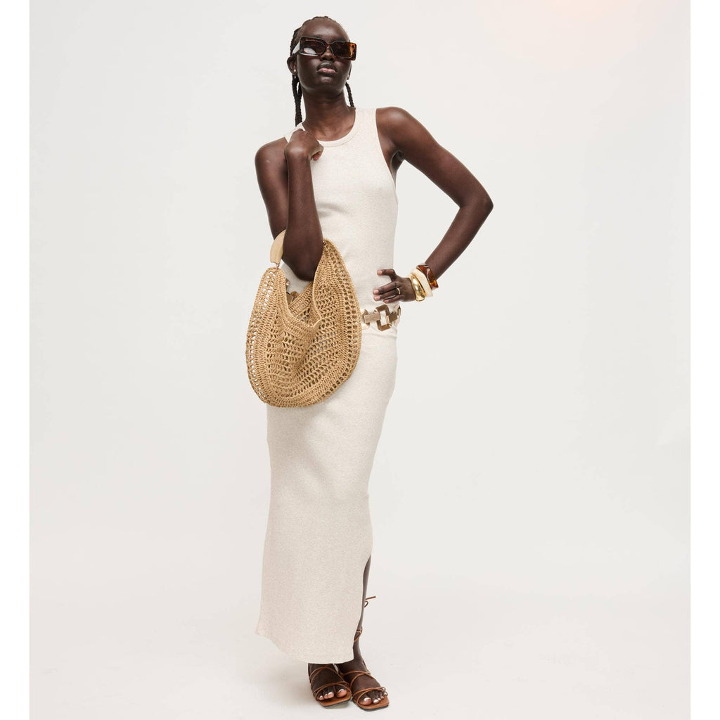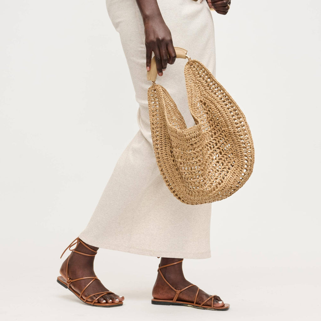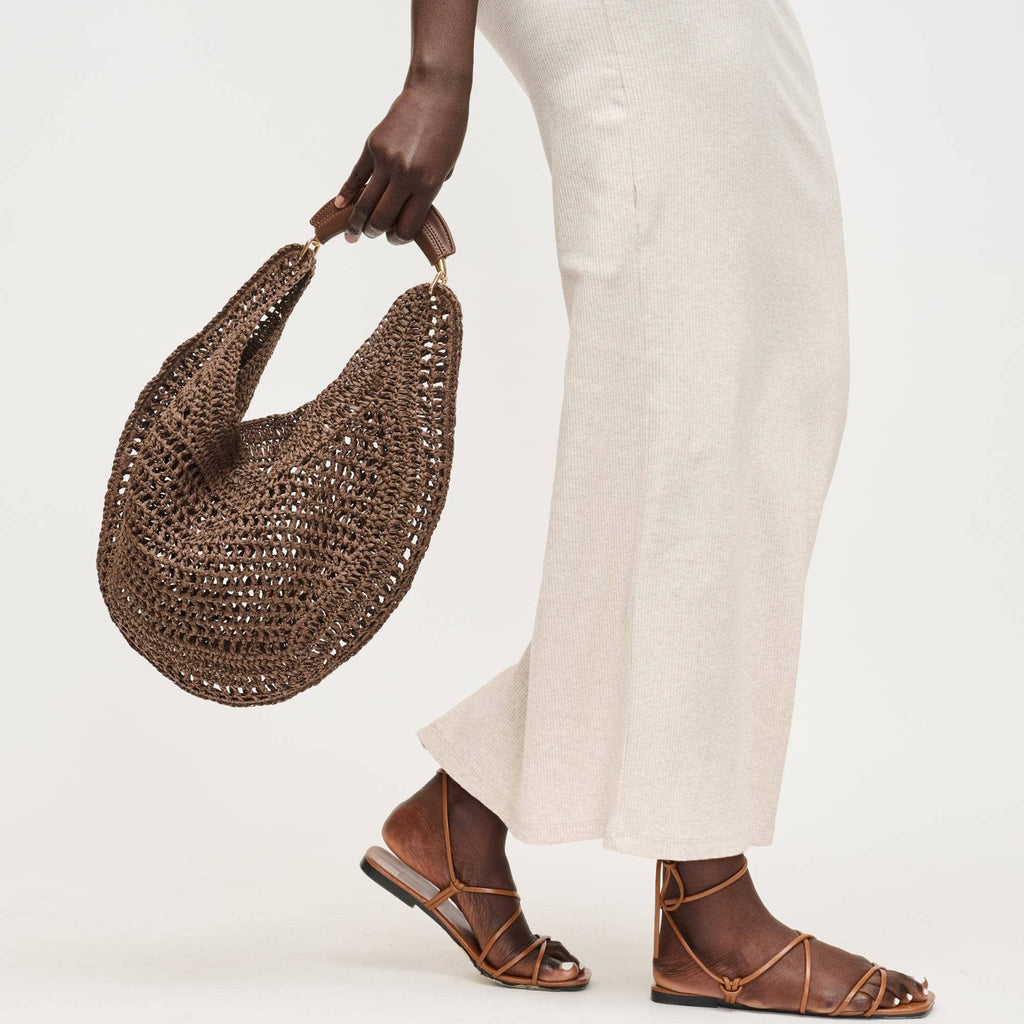 Slouchy, roomy interior holds daily essentials, while the breathable weave keeps the silhouette light and elegant. Curved, cushioned handle and subtle hardware deliver comfortable, modern polish. Ideal for trend-aware, ethically minded wardrobes that favor versatile day-to-night pieces. Wear by hand or tuck under the arm for effortless shape.