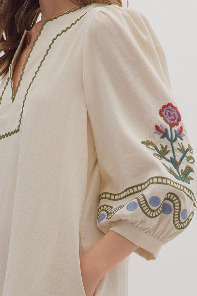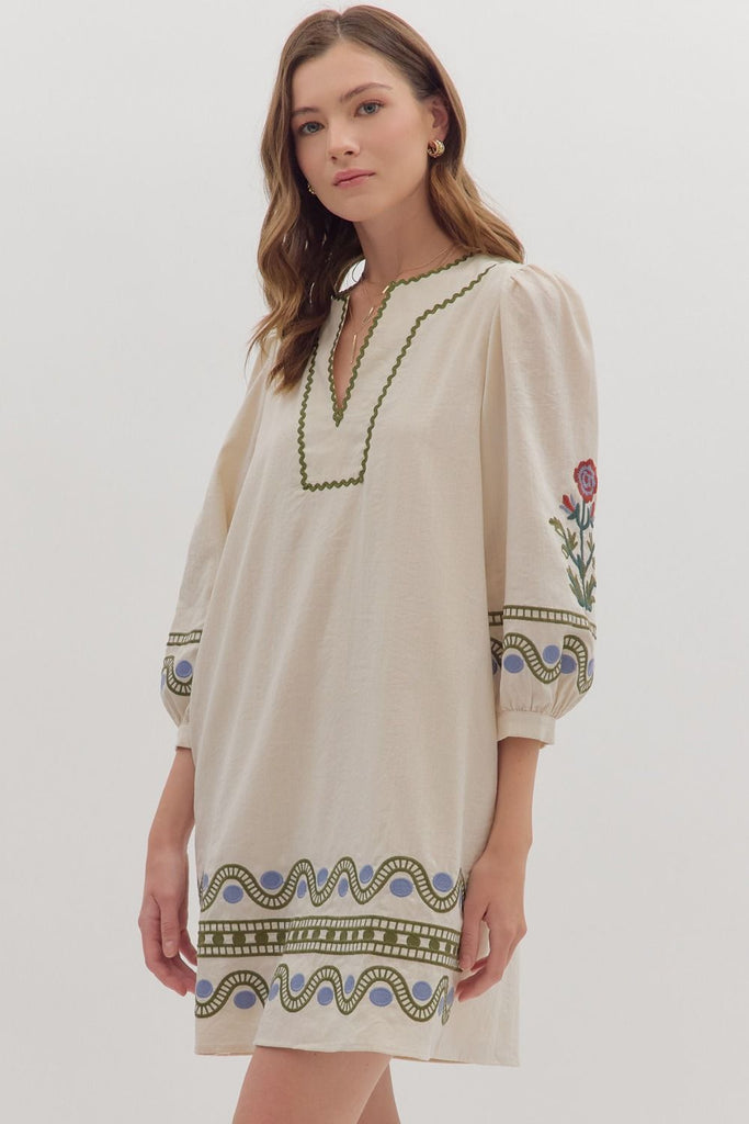 Embroidered Puff Sleeve Mini Dress