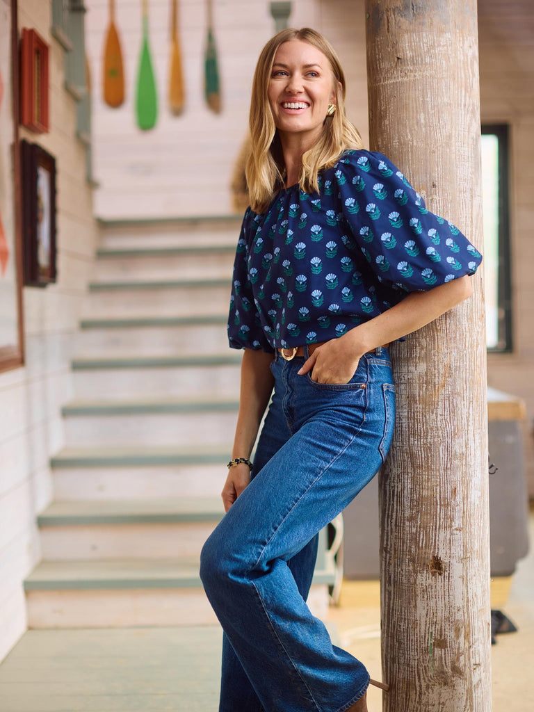 The Jewel Neck Printed Top is effortlessly elegant with its jewel neckline and delicate keyhole closure at the back. Finished with elastic cuffs at the sleeves, this top offers a flattering fit and subtle details that make it perfect for both day and evening wear.