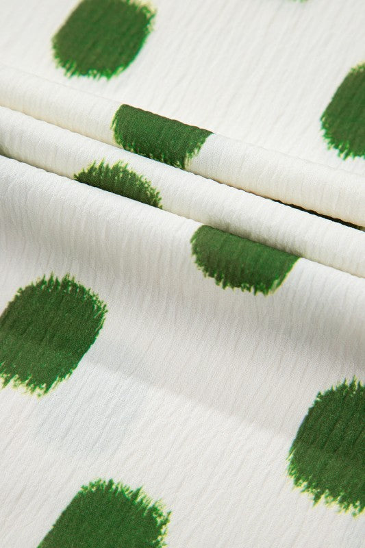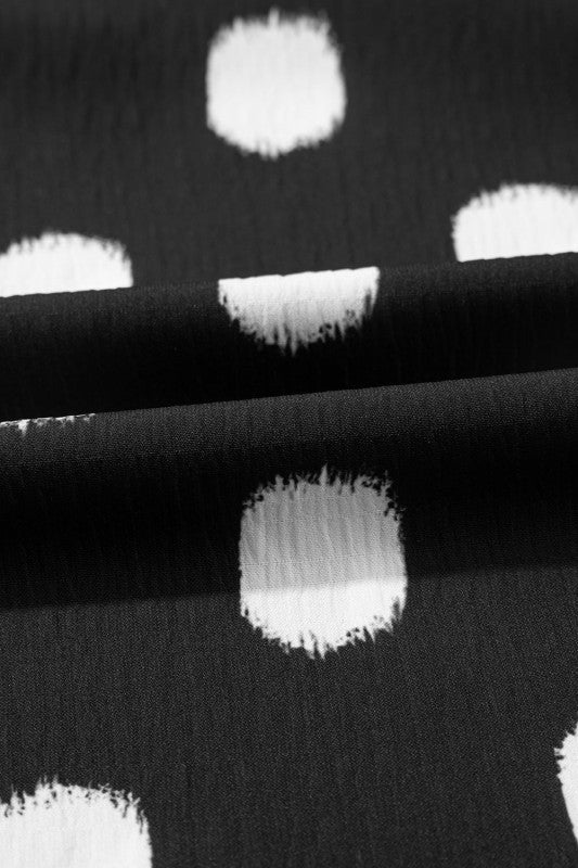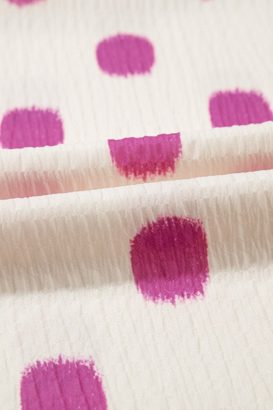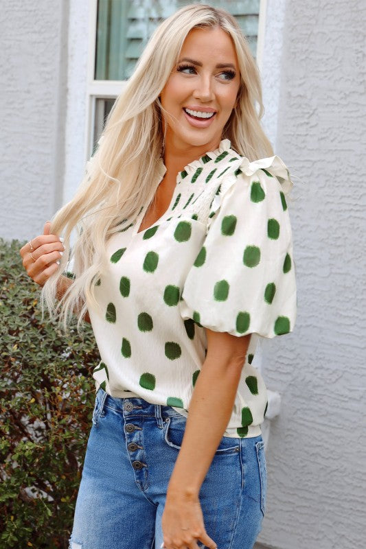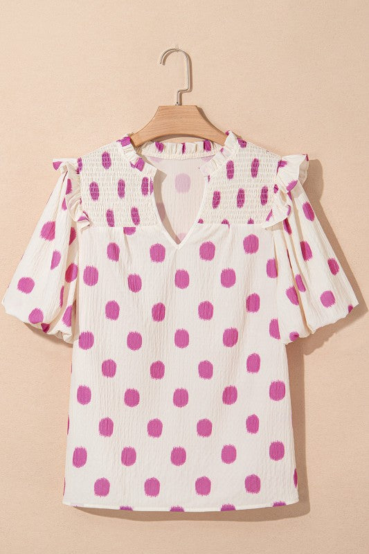 Polka Dot Shirred Neck Balloon Sleeve Blouse