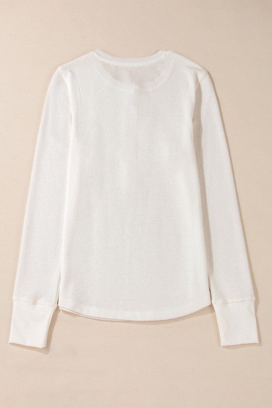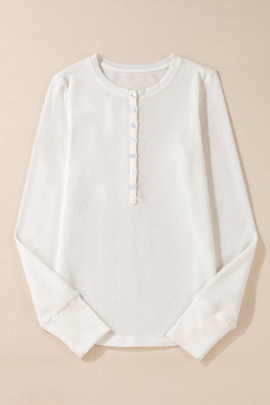 Meet Teresa Color Waffle Half Long Sleeve Top—effortless, flattering, and easy to style for everyday life. The plain top offers a cozy and stylish option for a classic look. The waffle texture adds depth and a unique feel to this top. The half button front provides a modern twist. This top pairs well with various bottoms for a polished outfit. long sleeve tops offer versatility for different weather conditions. Material: 65%Polyester+30%Cotton+5%Elastane.