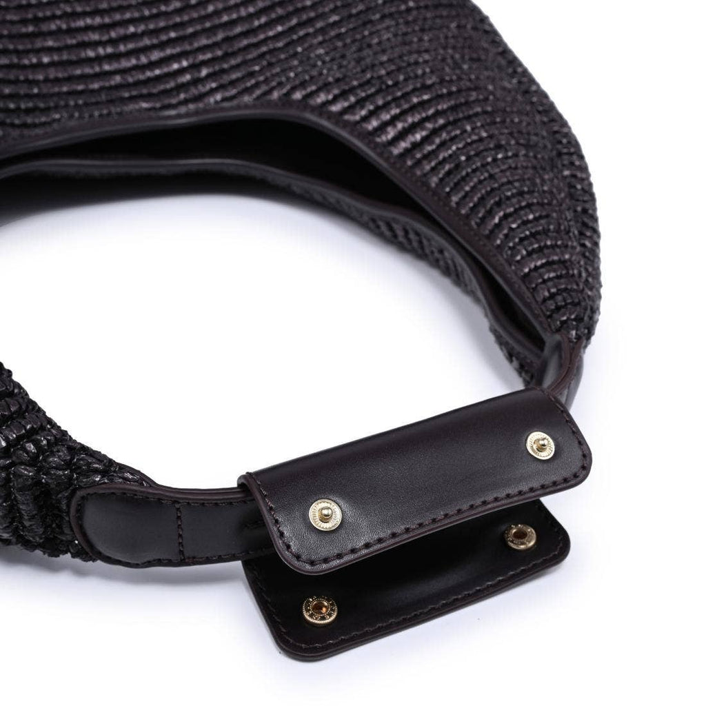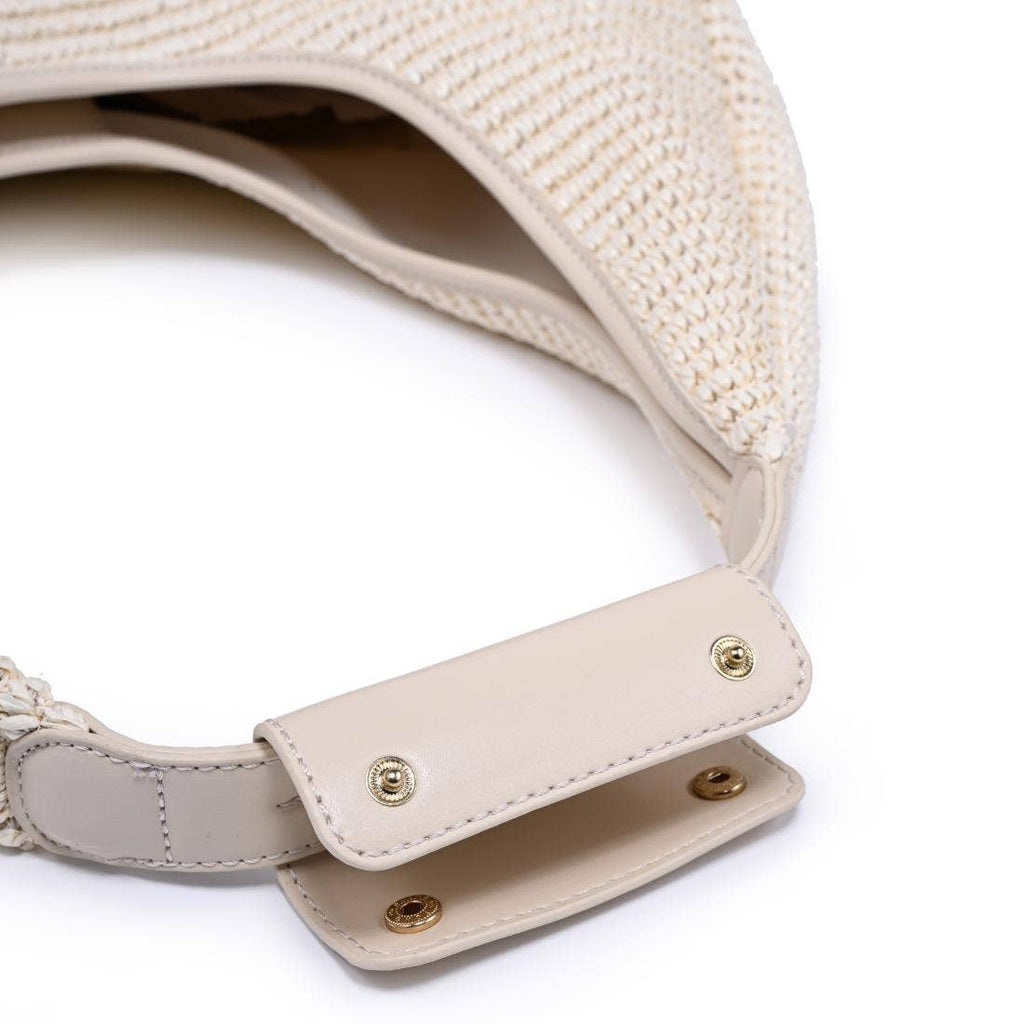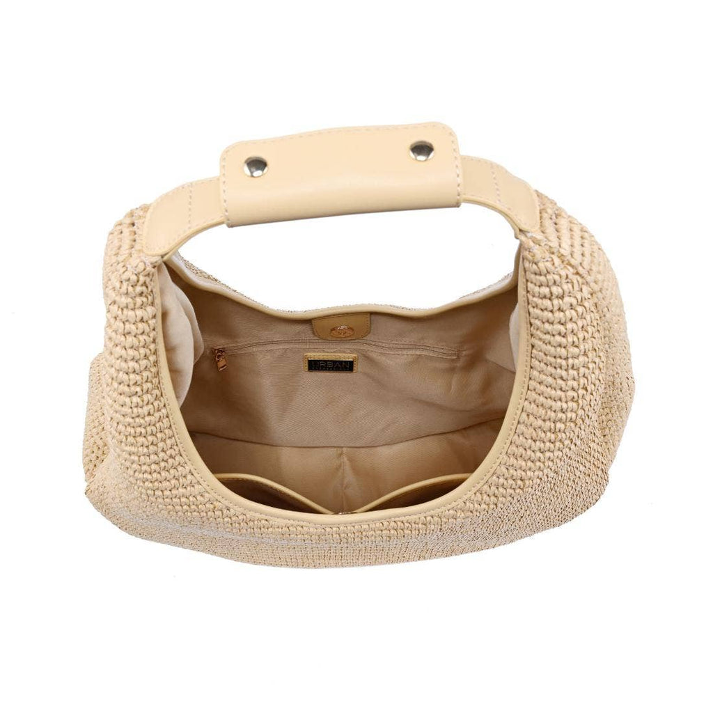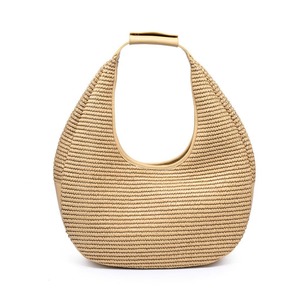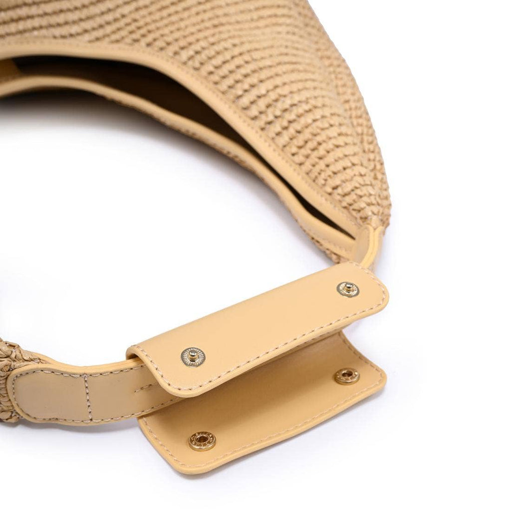 *Exterior Details: textured woven body with leather-trimmed base and reinforced padded handle for comfortable hand or shoulder carry and a stable silhouette on the go.